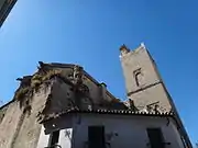 La torre se encuentra adosada a la Iglesia de San Dionisio. Su base es una de las capillas de la iglesia y consta de una espadaña dotada de una campana. Es propiamente un edificio civil de propiedad municipal que no corresponde en origen con el resto. Declarada como Bien de Interés Cultural con un código distinto al de la iglesia en sí (RI-51-0004318).[3]