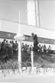 - Colocación de la primera piedra con los modelos de la antigua y la nueva torre
