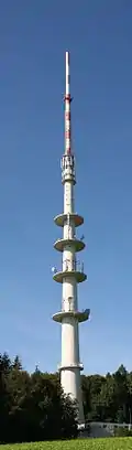 Es una torre autoportante que en su cima tiene una antena. No es accesible al público. A 43, 58, 70 y 81 m de altura tiene plataformas donde hay instaladas antenas de radio. Los transmisores de televisión digital se encuentran en la antena superior.