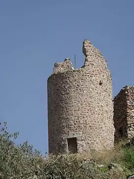 Tiene forma cilíndrica con base de seis metros de diámetro y una altura de trece metros. Se accede por una puerta situada a dos metros de altura. La fábrica es de mampostería. La parte superior está rematada lateralmente con un muro defensivo.