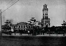 En octubre de 1880 se salvó de un incendio que destruyó gran parte del centro de Iquique. Como consecuencia, se amplió la plaza —ya conocida como plaza Prat— hacia el sur y el oeste, anexándole manzanas que había sido destruidas por el siniestro. La torre permanecería descentrada hasta que en 1889 una compañía del batallón Pisagua la ubicó en su posición actual, por orden del intendente Ramón Yabar.