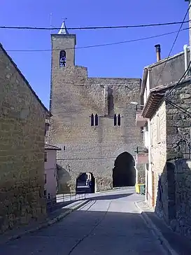 Se trata de un volumen compacto que integra también la torre campanario de la iglesia y consta de dos pisos en altura y dos crujías en planta. En el piso inferior se abre un paso, que originalmente era uno de los accesos de la ciudad. Por el lado que daba al exterior de la ciudad presenta un remate almenado.
