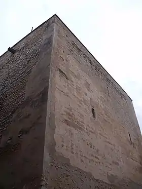Su estado actual forma parte de un paralelepípedo rectangular de 13 metros de base y 13.75 de altura, que deja patente así el continuo rebajamiento que ha sufrido a través de los años, encontrándose en la actualidad en el patio central del Ayuntamiento, al cual se une por el costado del este. Las edificaciones con las que esta adosada desfiguraban sus costados exteriores y eliminaron el ligero talud que ofrecen este tipo de edificaciones. La construcción presenta así dos plantas y una terraza donde el acceso a su interior se hace por medio a una puerta flanqueada por sillares (de 1,95 x 0,85 m.), situada a una altura de 4,25 metros, a la cual se accede por otra escalera de mano y a través de un corredor (2,40 x 1,30) que traviesa el amplio del mismo, por donde se accede a la primera planta, la cual presenta una forma casi cuadrada ( de 7,5 m de costado), donde se distribuyen tres galerías cubiertas con vuelta: las dos laterales, de 1,5 m de amplio, y la central, un tanto más pequeña, de 1, 35 m.