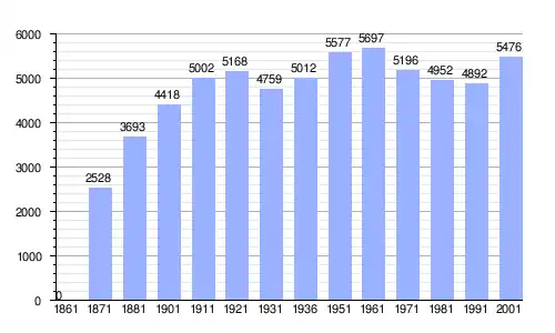 Gráfica de evolución demográfica de Torrebelvicino entre 1861 y 2001 |