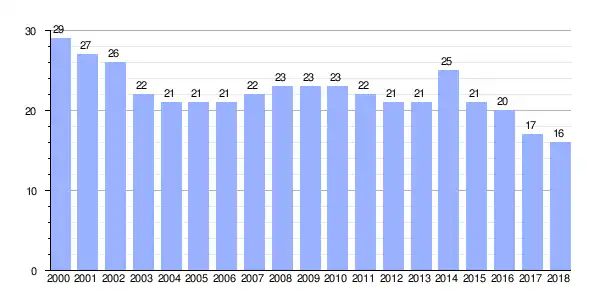 Gráfica de evolución demográfica de Torrelavandeira entre 2000 y 2018 |