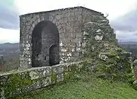 Tras todos los expolios sufridos solo quedan restos de la muralla y de la base de una de las torre de buenos sillares. También se pueden apreciar algunas ventanas con arcos apuntados pertenecientes a la reedificación de 1471, tras el asedio irmandiño.