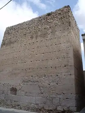 Está formada por una planta baja (en la que pueden verse los restos de un primitivo arco de medio punto de piedra, posteriormente ensanchado, posiblemente para facilitar la entrada de carros) y dos plantas superiores. Las paredes se encuentran alicatadas con azulejos valencianos datados del siglo XIX, pudiéndose distinguir en uno de ellos el año 1878. Su cubierta es de teja árabe de una sola agua.[1][2]