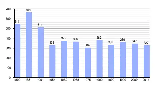 Gráfica de evolución demográfica de Torteval-Quesnay entre 1800 y 2014 |