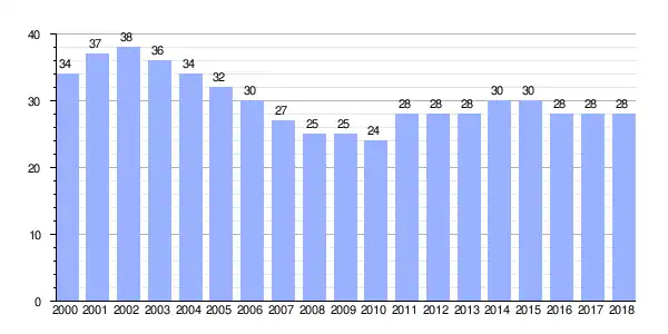 Gráfica de evolución demográfica de Tourís entre 2000 y 2018 |
