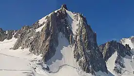 - El lado oeste: en el centro el Couloir Gervasutti, escalado por primera vez por Giusto Gervasutti y Renato Chabod en julio de 1934