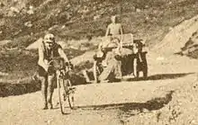 Octave Lapize, el vencedor del Tour de Franxia de 1910, subiendo el Tourmalet a pie.