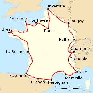 Desde 1906 el Tour de Francia venía atravesando la frontera con Alemania a la Alsacia-Lorena. Después de 1910 las autoridades alemanas no dieron volver a dar permiso, por lo que el Tour se disputó íntegramente en el territorio nacional francés.[6]