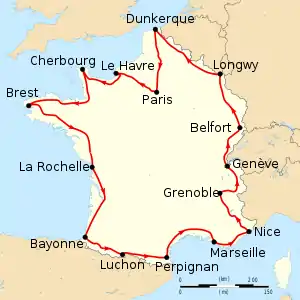 2. Wheatcroft, Geoffrey. Le Tour: a history of the Tour de France, 1903-2003, pàg. 59. Londres: Pocket Books, 2003.