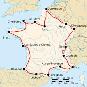 6. Christopher S. Thompson (2008). «The Tour de France». University of California Press. p. 36. ISBN 0-520-25630-1. Consultado el 12 de junio de 2009.