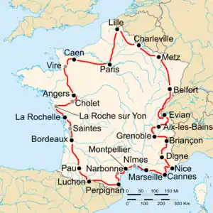 El 30.º Tour de Francia[1] se disputó entre el 7 de julio y el 2 de agosto de 1936 con un recorrido de 4438 km. dividido en 21 etapas de las que la decimotercera,, la decimocuarta, la decimoctava y la vigésima estuvieron divididas en dos sectores y la decimonovena en tres.