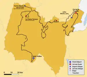 El Tour de l'Ain dispuso de 3 etapas sobre una distancia un recorrido total de 450,7 km.[2]
