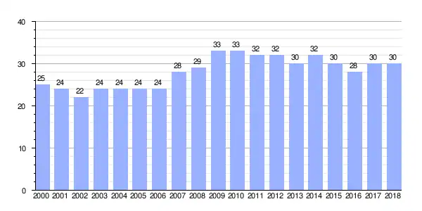 Gráfica de evolución demográfica de Touriñao Darriba entre 2000 y 2018 |