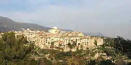 El pueblo se define por la presencia de edificios románicos y medievales así por un entorno natural definido por ser la parte más baja de los Alpes Marítimos.