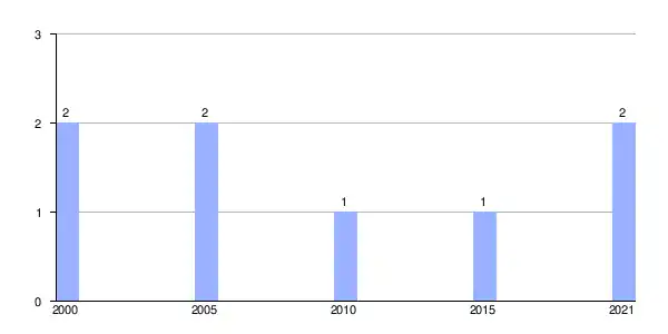 Gráfica de evolución demográfica de Touzón entre 2000 y 2021 |