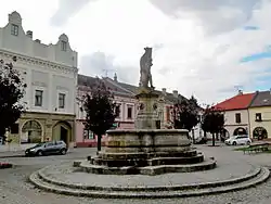 La plaza fue fundada en 1475 (pero la primera mención escrita del pueblo data de 1203 ) siendo una de las más antiguas de Moravia. El ayuntamiento. con un portal renacentista en el pasaje es uno de los monumentos históricos más valiosos, junto con una fuente de 1694 y una estatua de San Wenceslao de 1872.