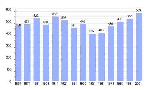 Gráfica de evolución demográfica de Tovo di Sant'Agata entre 1861 y 2001 |