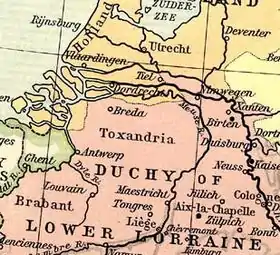 ![]() Toxandria en un mapa de Europa Central (919-1125) | ||