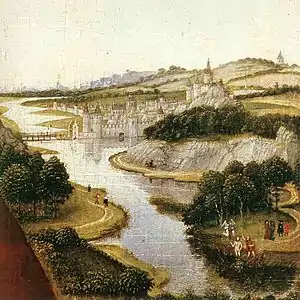 Es mencionado por primera vez, sin atribuir, en el testamento de Catalina de Brabante en 1497 cuando se lo dejó a su nieto Jehan Villan. Los registros muestran el retablo en posesión de sus herederos hasta 1586, después de lo cual fue comprado por un sacerdote en Inglaterra. Más tarde entró en posesión del pintor inglés Richard Evans. Fue comprado por el Museo del Louvre a la hija del Duque de Westminster Lady Theodora Guest, en 1913.[14] En ese momento, fue considerada la adquisición más importante de la galería pública desde 1878, cuando fue legada una obra importante de Hans Memling. También se pagó un precio récord por un van der Weyden; J. P. Morgan anteriormente había abonado $100.000 por la Anunciación ahora en el Museo Metropolitano de Arte de Nueva York.[15][16][17]