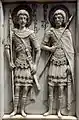 - Hoja izquierda, panel superior: Teodoro de Amasea y Teodoro Stratelates
