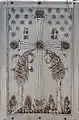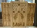 Todos los lados del tríptico están tallados totalmente, con más santos en el exterior que en las hojas laterales, y un elaborado esquema decorativo en la parte trasera de la hoja central.