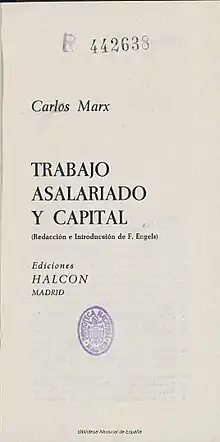 - Marx, Karl (2018). Trabajo Asalariado y Capital. CreateSpace Independent Publishing Platform. ISBN 978-1-9868-1964-0.