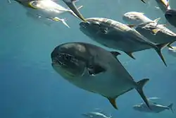 - Esta obra contiene una traducción derivada de «Trachinotus africanus» de Wikipedia en catalán, publicada por sus editores bajo la Licencia de documentación libre de GNU y la Licencia Creative Commons Atribución-CompartirIgual 3.0 Unported.