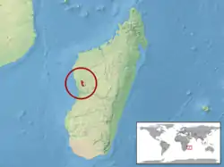 Es endémica de Madagascar. Su rango altitudinal oscila entre 57 y 150 msnm.