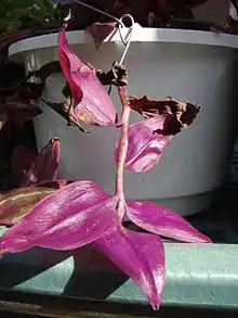 Tradescantia zebrina (sin.: Zebrina pendula) es una especie herbácea y perenne perteneciente a la familia de las commelináceas.