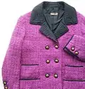 El traje rosa de Jacqueline, quien fue un icono de la moda, es el más conocido y referenciado de todos los elementos de su guardarropa, llegando a convertirse en su marca personal.[4][5] Un tema objeto de debate durante mucho tiempo entre historiadores y expertos en moda fue si el traje había sido elaborado por Chanel en Francia o si se trataba de una copia de alta calidad adquirida en las colecciones semianuales de Karl Lagerfeld o Chez Ninon en Nueva York. El dilema fue resuelto por Justine Picardie, biógrafa de Coco Chanel, quien demostró que el traje en cuestión es en realidad una copia elaborada por Chez Ninon haciendo uso de patrones y materiales autorizados por Chanel.[6]
