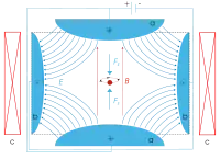 Las trampas de Penning son utilizadas para el almacenamiento de partículas cargadas usando un campo magnético estático constante y un campo eléctrico espacialmente inhomogéneo.[7]