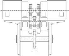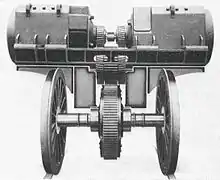 El accionamiento universal SLM se caracteriza por la relación de transmisión doble, por lo que la relación de transmisión se puede seleccionar libremente dentro de un amplio rango. Dos motores coaxialmente opuestos están dispuestos en el cuerpo de la locomotora sobre el respectivo eje motriz. El conjunto de engranajes es impulsado por una relación de engranajes doble, de forma que la segunda rueda de engranajes está conectada en el centro al conjunto de engranajes con un acoplamiento de junta universal.[1]