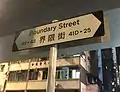 - Uso en señalética en Irlanda, con los textos en irlandés en cursiva y en inglés