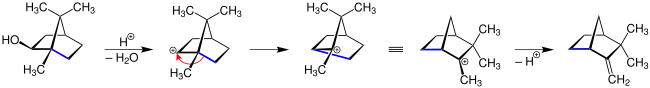 Esta transposición fue primero descubierta en terpenos bicíclicos, como en la conversión de isoborneol a canfeno.[4] Su historia es un ejemplo de como muchos científicos se han visto desconcertados frente a este tipo de reacciones, de una forma directamente relacionada al descubrimiento de los carbocationes como intermediarios.[5]Varios estudios acerca de este fenómeno han sido publicados.[6][7][8][9][10]