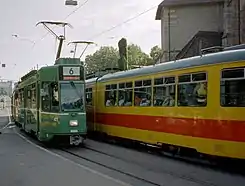 ![]() Tranvías de BVB (verde) y BLT (amarillo con rojo). | ||