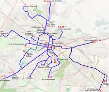 1. «Route network of tram lines of Sofia's public transportation». Sofia Urban Mobility Center. 2013. Consultado el 10 de septiembre de 2013.