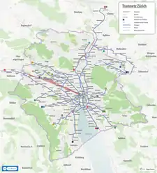 Los tranvías de Zúrich hacen una contribución importante al transporte público de dicha ciudad en Suiza. La red de tranvías sirve a la mayoría de barrios de la ciudad, y es la columna vertebral del transporte público dentro de la ciudad, siendo complementado por las secciones interiores del S-Bahn Zúrich, junto con los trolebuses urbanos y rutas de autobús así como dos ferrocarriles de funicular y un ferrocarril de cremallera. Los tranvías y otros modos de transporte de la ciudad operan dentro de un régimen tarifario proporcionado por la autoridad de transporte pública cantonal Zürcher Verkehrsverbund (ZVV), el cual también cubre servicios regionales de ferrocarriles y autobuses.[4][5][6]