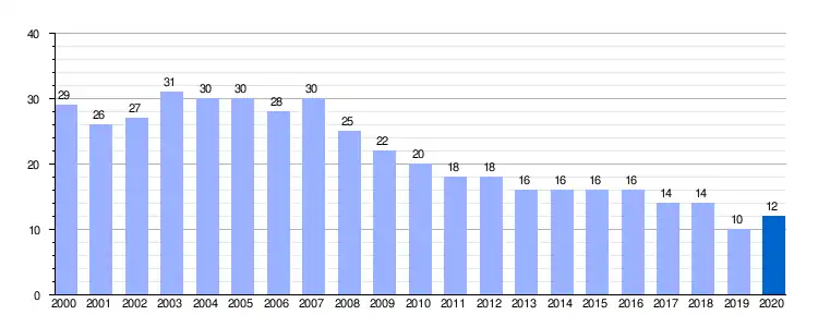 Gráfica de evolución demográfica de Traspeña de la Peña entre 2000 y 2020 |