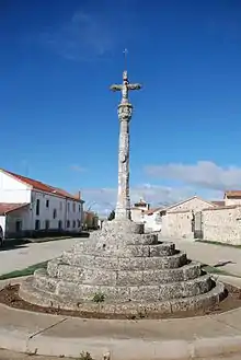 - Cruz de término: considerado como uno de los más bellos de toda Castilla y León. Se yergue sobre un pedestal de siete escalones circulares y decrecientes, alzándose un mástil ornamentado con múltiples dibujos góticos, para rematarse con un grueso capitel donde se tallaron diversas figuras de santos. En su cima, la cruz lleva la Virgen por un lado, y al Crucificado por el otro. Este signo religioso, recientemente restaurado, emociona por su belleza y por la grandiosidad del paraje en que se halla. Es obra financiada. Portillo la talló en el siglo XV.