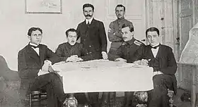 ![]() Firma del tratado de paz entre República Popular Ucraniana y los Imperios Centrales el 9 de febrero de 1918. | ||
