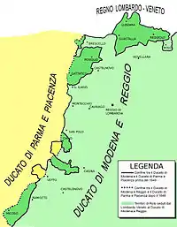- los territorios parmesanos del ducado de Guastalla, así como los territorios de Luzzara y Reggiolo;