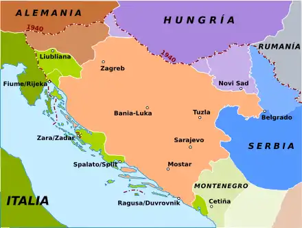 El 21 de abril de 1941, tras haber retrasado el anuncio de la cesión de Dalmacia, el ministro de Asuntos Exteriores alemán, Ribbentrop, mostró su apoyo a la inclusión de Bosnia-Hercegovina en el nuevo Estado croata y «porciones considerables» de Dalmacia.[2] Las posteriores negociaciones, en las que el Gobierno de Pavelić solicitó continuamente el respaldo alemán para contrarrestar las ambiciones italianas, incluyeron la petición croata de conservar en su territorio toda Dalmacia, Split (en italiano: Spalato), Dubrovnik (en italiano: Ragusa) y varias islas del Adriático.[2]