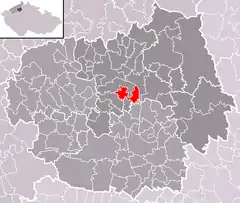 Se encuentra ubicada al este de la región, cerca de la orilla de los ríos Elba y Ohře, y de las regiones de Liberec y Bohemia Central.[1]
