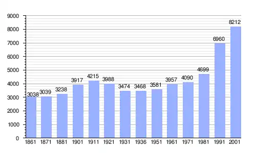 Gráfica de evolución demográfica de Trecastagni entre 1861 y 2001 |