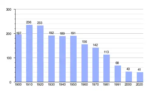Gráfica de evolución demográfica de Tremedal de Tormes entre 1900 y 2020 |
