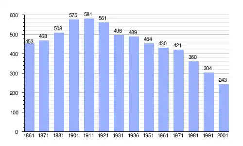 Gráfica de evolución demográfica de Tremenico entre 1861 y 2001 |